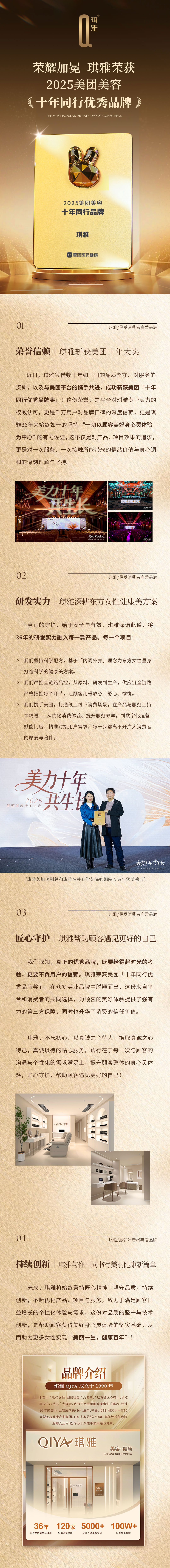 荣誉加冕!琪雅荣获2025年美团美容“十年同行优秀品牌”!